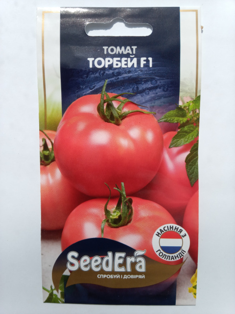 Період дозрівання томату Торбей F1 -110-115 днів. Кущ детермінантного типу, нмзькорослий до 1 м, потужний, розлогий. Плоди плоско-округлі, щільні, в стадії зрілості рожевого кольору, вагою 150-200 г. Не схильні до розстрісування. Мають ілеальні смакові якості. Універсального призначення-підходить для свіжих салатів,приготування соусів і консервації. Стійкий до основних хвороб томатів.